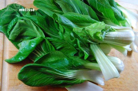 On les appelle aussi bok choi, et en Calédonie on dit « chou Chine ». Si vous n’en trouvez pas, on peut utiliser des brèdes, des blettes, ou des épinards pourquoi pas.
